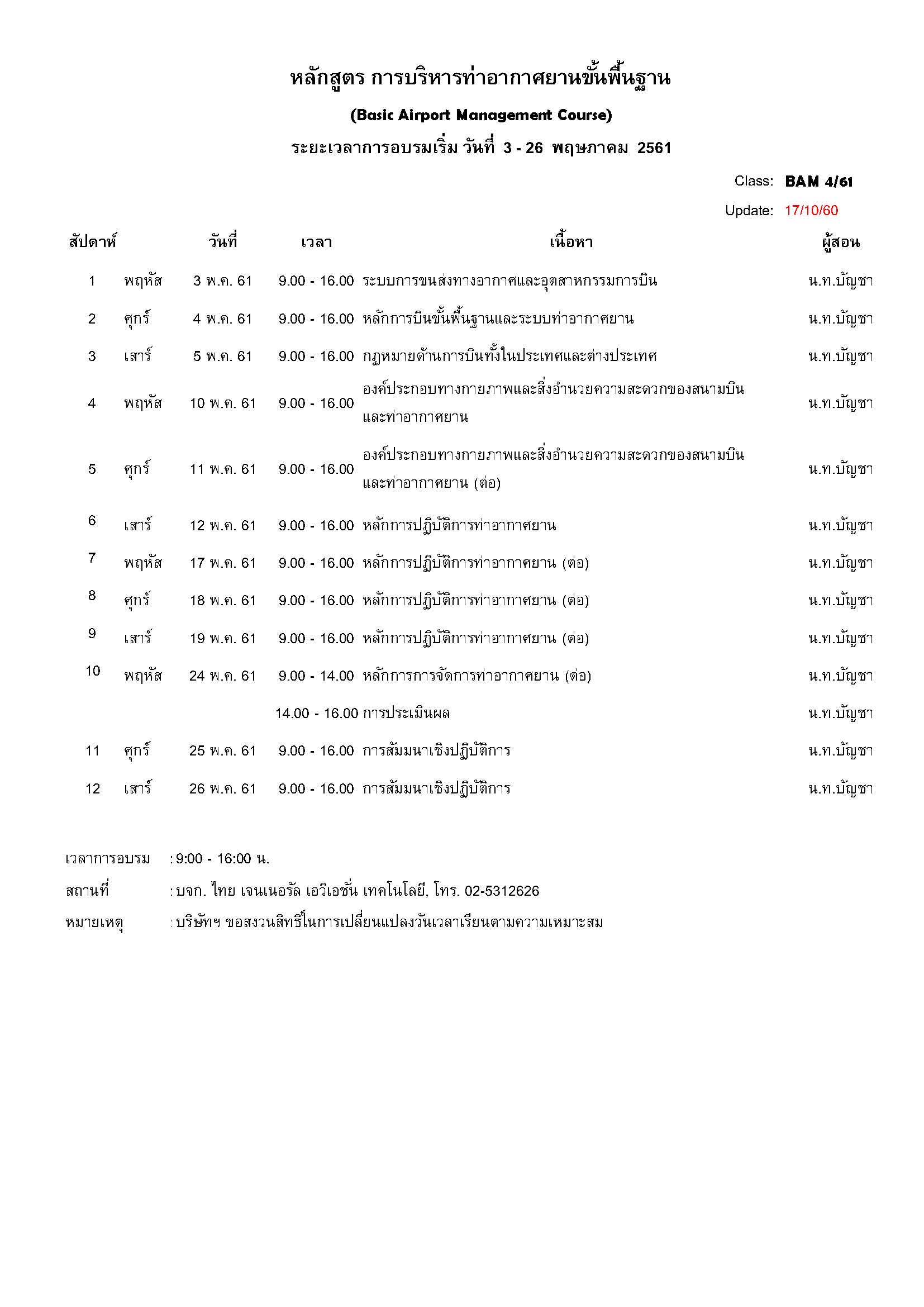 Timetable BAM 4-61